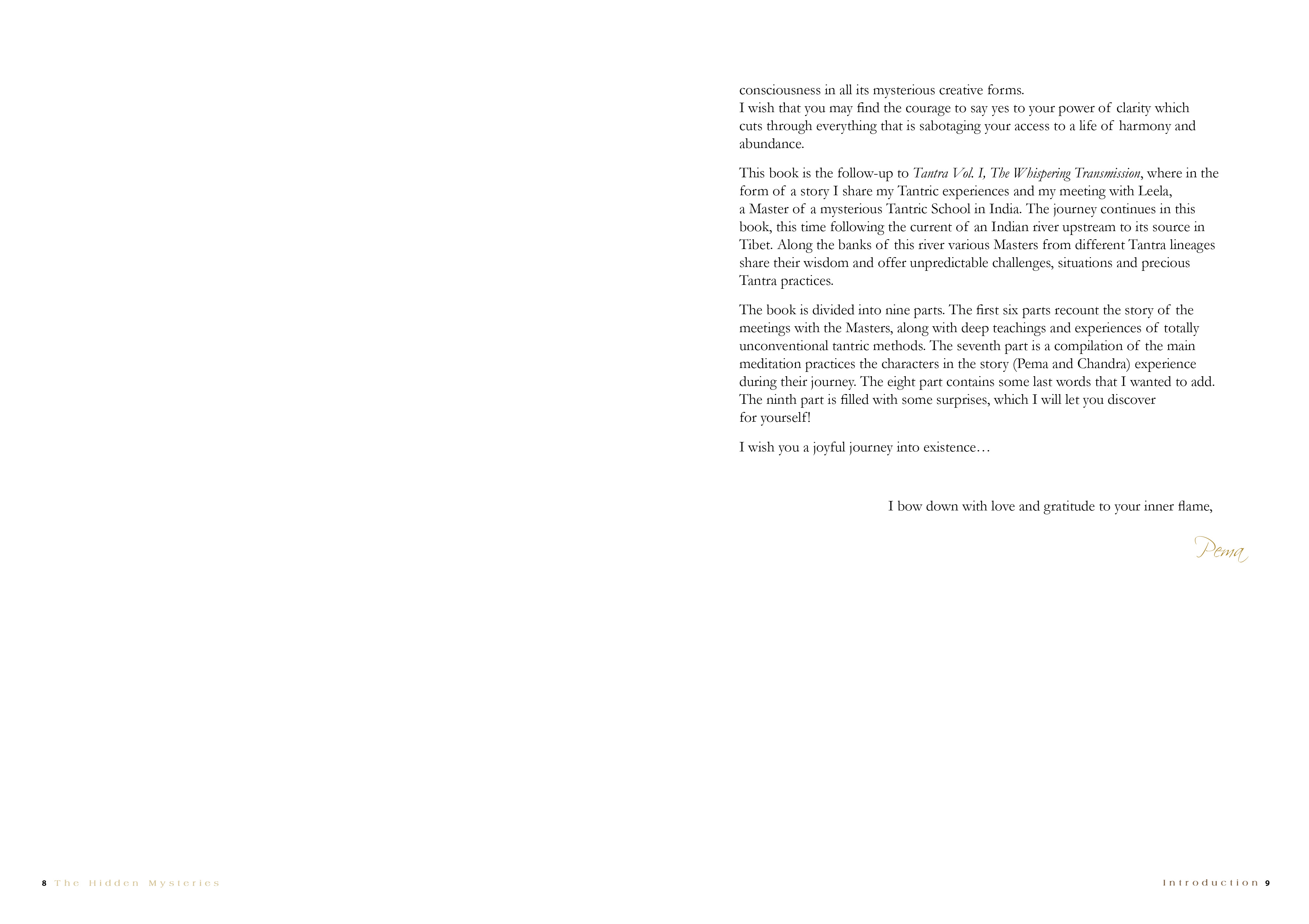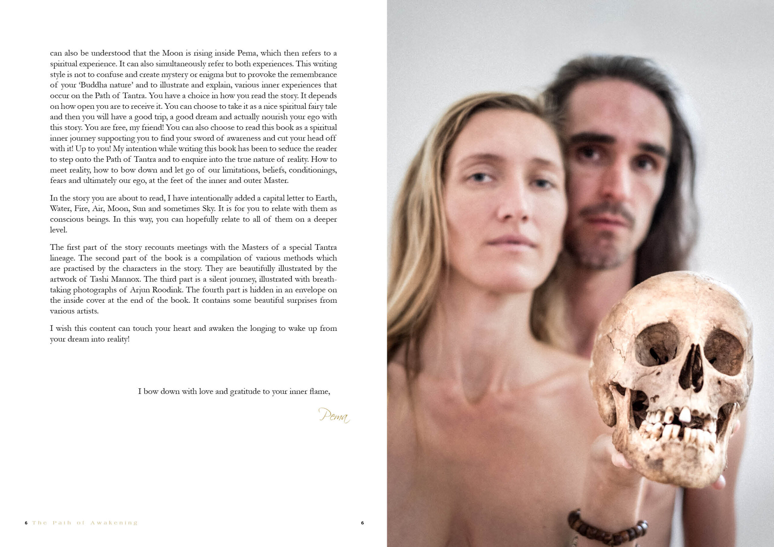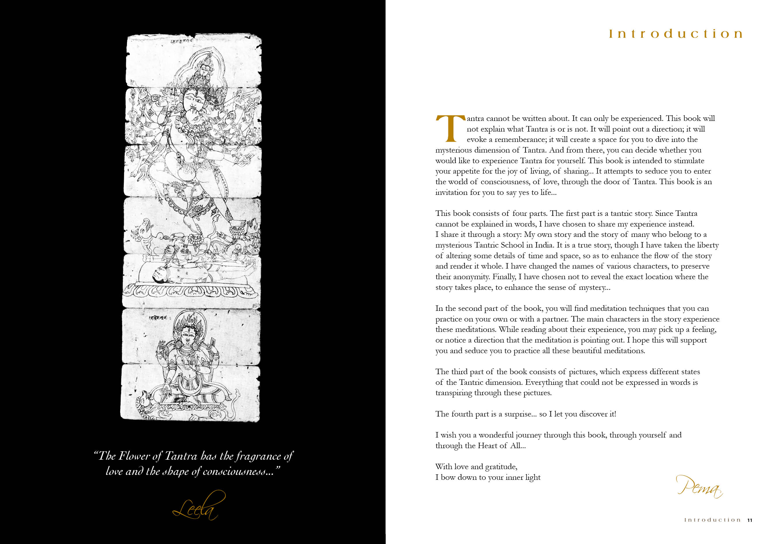 Pema Gitama, the author is investigating the depth of the mysterious Tantra Path by narrating the true story of a young Tibetan woman Pema, who, through various initiations, becomes disciple of the Indian Tantric Master: Leela. The story offers two perspectives of Tantra; the one from the Master and the one from the disciple, which makes the book very rich of wisdom, insight, break-through experiences, intense emotions, playfulness, sensuality. On the side of this spiritual adventure, there is a step by step guide into Tantric Meditation for individuals and couples to enable them to lift up their life energy to a blissful sexuality, to a fulfilling relating, and the highest level of consciousness and love.